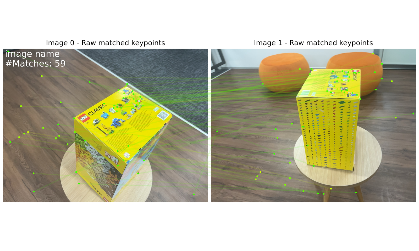 Our pose estimation pipeline, like most typical pose estimation pipelines, begins by understanding the nature of the images at hand. The first step in feature extraction aims to identify distinctive and salient points or regions in the images. These keypoints are crucial because they serve as anchor points that can be matched across multiple images, enabling the SfM system to establish correspondences between different views.Keypoints are typically detected based on their uniqueness and repeatability under varying conditions, such as changes in lighting, viewpoint, and scale. The quality of the resulting 3D model heavily depends on the method used for local feature extraction, making it of utmost importance. We have fine-tuned the Superpoint feature extractor with our extensive repository of in house ground truth 3D data, to better understand features of primary importance to our use care. While passing full-sized 4032 × 3024px images through the VGG-style Superpoint encoder yields the most accurate point detections, it significantly increases computational complexity, leading to longer training times. We have found that downscaling to 1016×1502px and using a keypoint threshold of 0.005 provides us with reasonably good key points while maintaining speed.