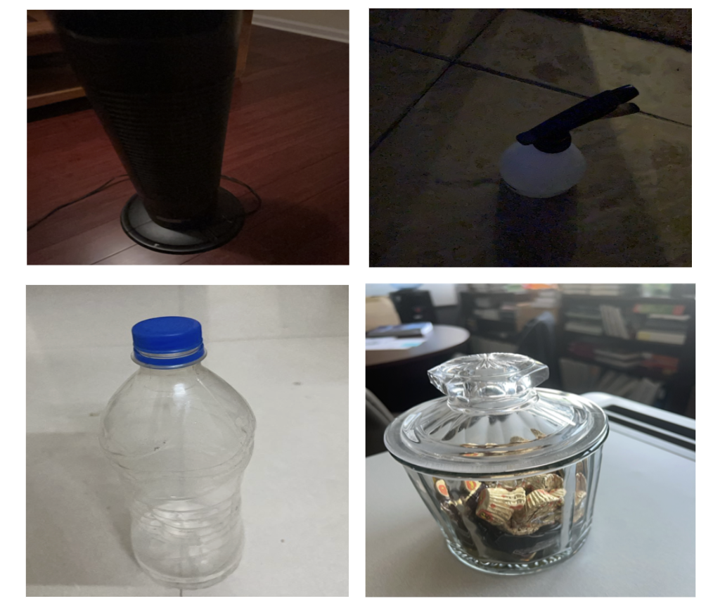 The first category of failures is related to camera errors caused by object material. Transparent objects, especially those with poor surrounding illumination, often lead to inaccurate camera estimation. Transparent materials bend light rays as they allow them to pass through, causing objects behind the material to appear distorted when viewed from different angles. This distortion introduces ambiguities in feature matching and depth estimation during the triangulation process.